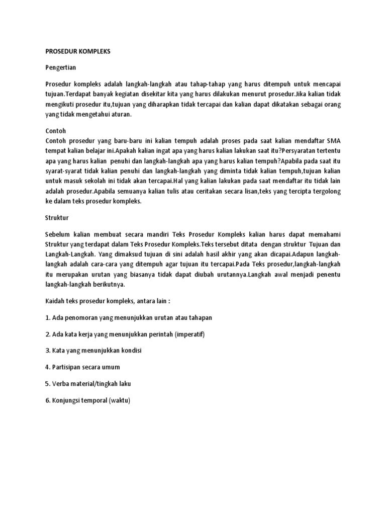 Mengapa teks prosedur kompleks dikatakan âkompleksâ? We did not find results for: Maybe you would like to learn more about one of these? Check spelling or type a new query.